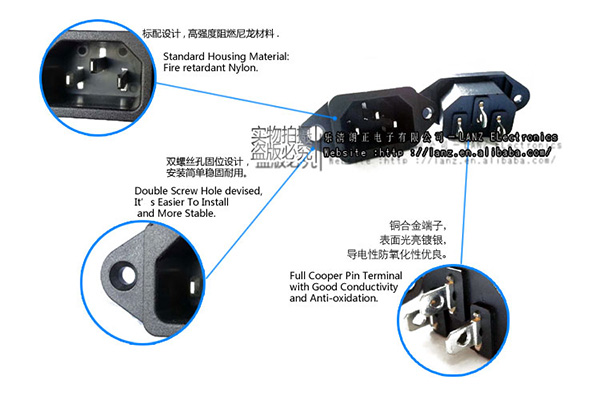 LZ-14-1朗正品字公電源插座,端子4.8mm