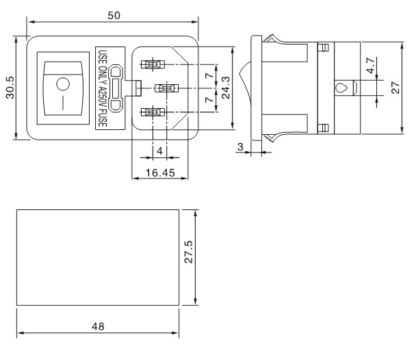 品字帶單保險帶開關-C14
