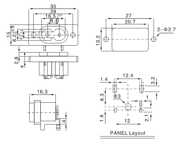 八字電源插座-C8